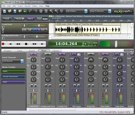 Acoustica Mixcraft - многодорожечное звуковое программное обеспечение с большим количеством эффектов (переконверт, задержка, компрессор, Flanger и хор), так же резонансные фильтры и мощной редактор дорожек. Высокая эффективность порадует вас, разгон 32 бита со студийным качеством, поддержка файлов WAV и даже импортируемых сжатых MP3, OGG, WMA файлов. Удобен для записи собственной музыки, к примеру, дорожек музыки или соединять разные файлы в один.