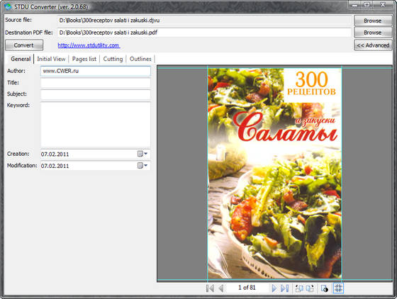 Пользоваться чрезвычайно просто, - находите документ в DjVu или TIFF формате и нажимате кнопку "Convert", и Все! Не забудьте только, указать папку куда вы будите складывать готовые PDF файлы.