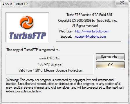 Скачать программу TurboFTP 6.30 Build 845 (7,68 МБ):