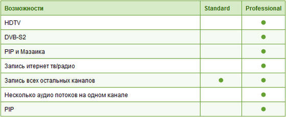 - Поддержка HDTV включая H.264/AVC (в Professional)