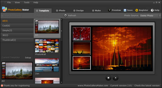 Photo Gallery Maker - профессиональное программное обеспечение, предназначенное для создания и публикации флэш-галерей из ваших фотоснимков с возможностью добавления фоновой музыки.