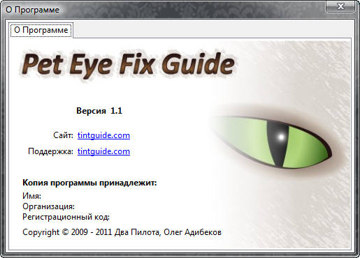 Pet Eye Fix Guide - программа для устранения эффекта засвеченных глаз с фотографий домашних животных и людей. Позволяет восстановить даже полностью испорченные вспышкой глаза. Может справиться с засвеченными глазами любого цвета - красными, желтыми, зелеными, синими и даже полностью белыми. Победит засветку как в зрачке, так и на всем глазу. Программа реализована как самостоятельное приложение и как плагин к различным графическим редакторам.