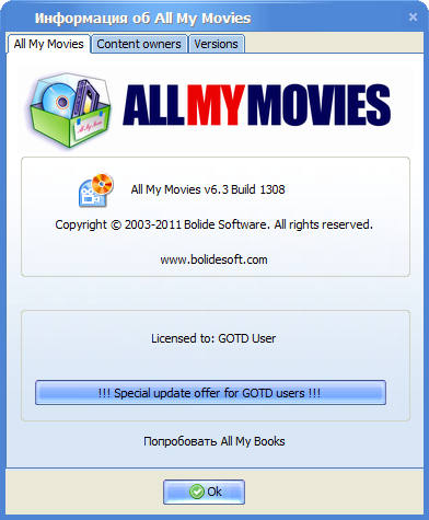 Скачать программу All My Movies 6.3 Build 1308 (10,87 МБ):