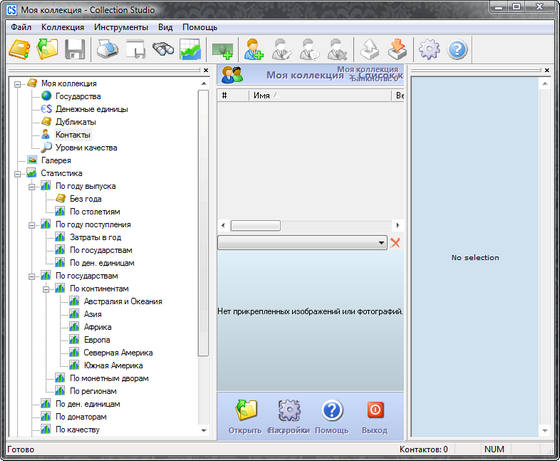 Collection Studio - программа, которая помогает коллекционерам для учета своих коллекций монет, банкнот, почтовых марок, плакатов, дисков, фильмов и др. Она позволяет отобразить всю коллекцию в одном списке или частично в зависимости от критерия выборки и сортировки. Легкие для использования инструменты помогают быстро и удобно вносить изменения и дополнения в базу вашей коллекции, позволяя наслаждаться удивительным миром коллекционирования.
