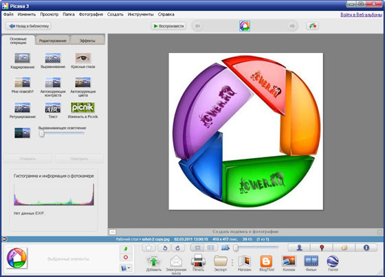 Picasa также упрощает внесение сложных изменений благодаря мощным эффектам и возможности вносить исправления одним нажатием. С помощью Picasa можно легко и быстро обмениваться фотографиями – Вы можете отправлять фотографии по электронной почте и печатать, создавать подарочные CD и даже размещать фотографии в Вашем блоге.