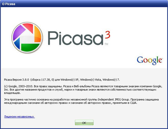 Picasa 3.80 Build 117.38