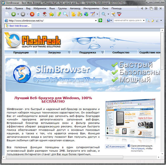 Скачать программу SlimBrowser 5.01 Build 019 Final (2,38 МБ):