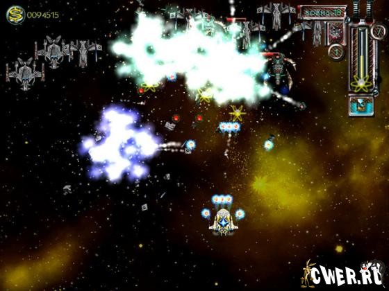 С каждой новой волной врагов становится все больше, их вооружение — мощнее, корабли — хитрее и маневреннее, а броня — крепче. Но и ваш космолет постепенно улучшается. Из уничтоженных врагов выпадают разные бонусы: улучшения основного оружия корабля, дополнительное сверхмощное вооружение, защитные системы и другие полезные устройства.