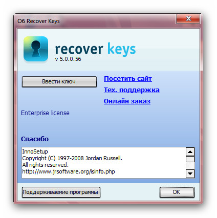 Вы потеряли все ваши ключи? Наверное, да. В таком случае вы можете сделать дубликат или поменять замок. Что если вы потеряли ключи активации от операционной системы Windows или других важных программ, которые недавно купили? Это может стоить вам сотен тысяч долларов. По этой причине я создал данную программу. С Recover Keys вы просто диагностируете вашу систему для всех установленных программ и создаете резервную копию, печатаете ее или сохраняете в текстовый файл. Это поможет сэкономить вам большое количество денег.
