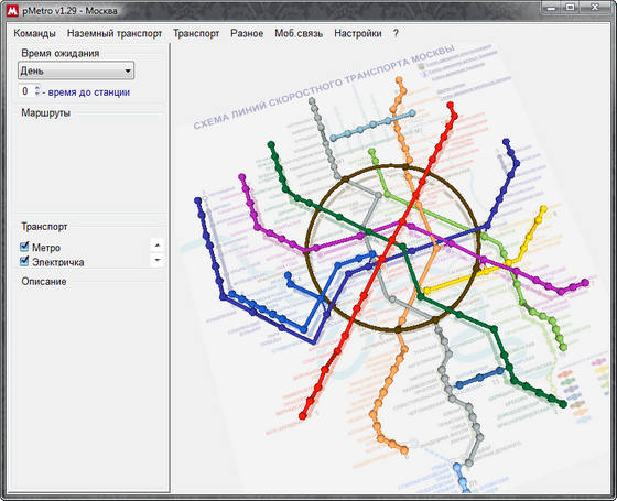 pMetro - справочник метро Москвы и других городов. Отображает схему метро города (а для некоторых городов и схему электропоездов), позволяет найти кратчайшие пути между станциями, а также описывает, что находится рядом со станциями.