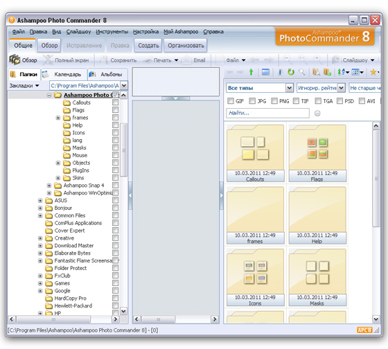 Ashampoo Photo Commander - универсальный набор средств для работы с цифровыми изображениями. Позволяет с комфортом просматривать цифровые фотографии, в удобном виде организовывать их хранение и сортировку на жёстком диске, также присутствует возможность создания слайд-шоу и последующей его записи на CD/DVD диски. Встроенный графический редактор позволяет регулировать яркость и контраст всего изображения или отдельного фрагмента, вращать изображение, зеркально отображать его, выводить на печать и отправлять цифровые фотографии по электронной почте. Поддерживается работа с RAW файлами и имеется возможность использования в качестве медиа-проигрывателя.