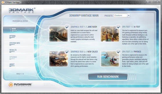 Поскольку 3DMark Vantage должен использовать только аппаратную поддержку DirectX 10, для его работы необходимо будет установить один из вариантов операционной системы Windows Vista / 7 (серверные решения не поддерживаются).