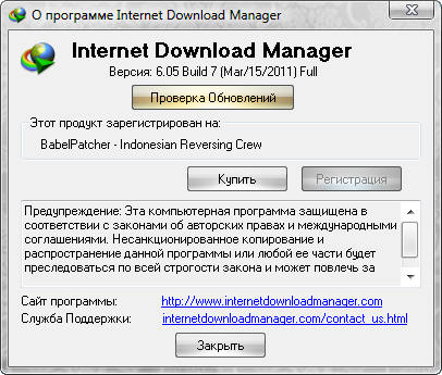 Скачать программу Internet Download Manager 6.05 Build 7 Final (4,53 МБ):