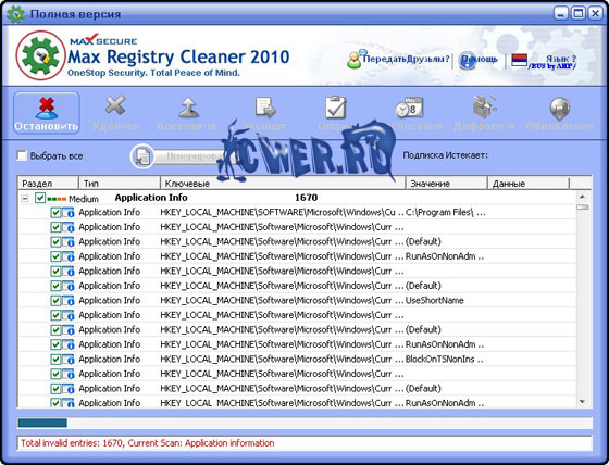 Программное обеспечение Max Registry Cleaner устраняет различные помехи и ненужный хлам, который "растет" в реестре Вашего компьютера из-за постоянной установки и удаления программ, удаления и создания файлов и Вашей он-лайн деятельности. Это приводит к быстрой оптимизации реестра, который и позволяет Вашему компьютеру выполнять работу должным образом. Без подобной "чистки" Ваш компьютер может стать медленным, полным сообщений об ошибках и кроме того, часто вызывать системные сбои.