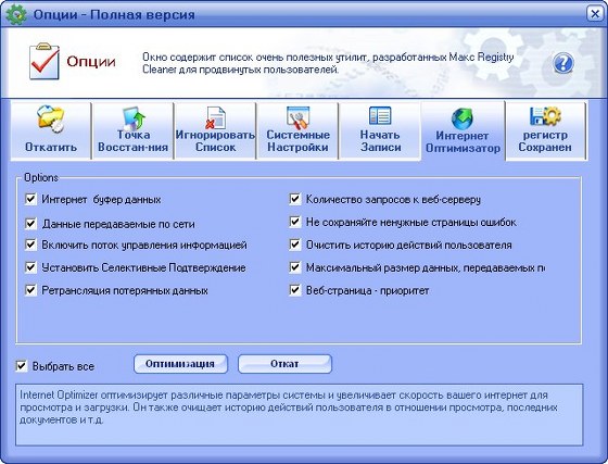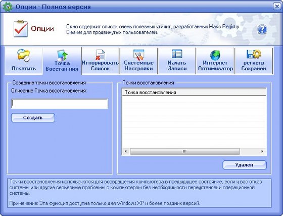 Max Registry Cleaner просматривает весь Ваш реестр Windows в поисках недопустимых входов и тем самым обеспечивает список ошибок реестра, найденных на Вашем компьютере. Вы можете проверять на наличие ошибок каждый элемент системы или автоматически устранять их всех. Программное обеспечение выполняет полное запасное копирование Вашей реестра, которая может быть легко восстановлена. Также создается резервная копия удаленных входов, которые могут быть восстановлены.