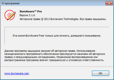 Скачать программу BurnAware Professional 3.1.6 Final (6,35 МБ):