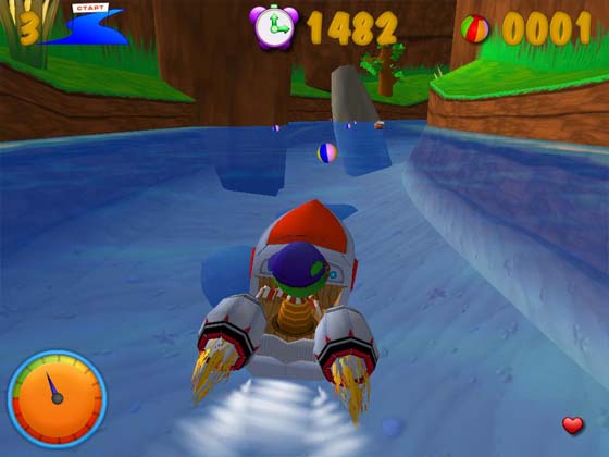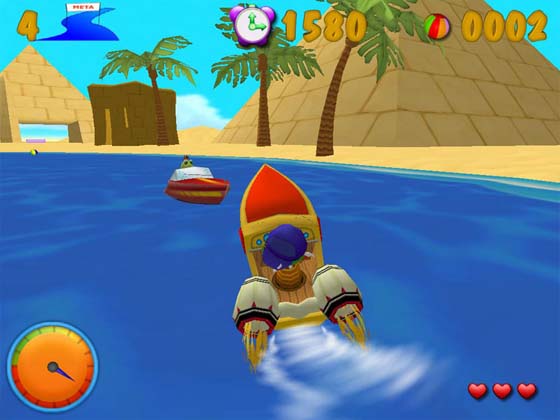 Маленький динозаврик Дино обожает экстремальные виды спорта, особенно – водные! Он сумел раздобыть быстроходный моторную лодку и теперь играючи рассекает волны стремительной и бурной реки. Вот только местные обитатели, аллигаторы и крокодилы, этим обстоятельствам отнюдь не рады! Зато они всегда готовы закусить незадачливым гонщиком. Впрочем, и без главного героя ужин у них будет отменный, ведь лодка появилась не только у Дино. Другие любители погонять на скорости по водной глади не отстают от прогресса ни на шаг! Сумеет ли симпатичный представитель мезозойской эры преодолеть препятствия и трамплины, ускользнуть от челюстей речных хищников и прийти к финишу первым? Ему поможет режим ускорения и ваша быстрая реакция, но помните – лучше вовремя притормозить, чем врезаться в скалы на полной скорости. А впрочем… Кто не рискует, тот не празднует победу!