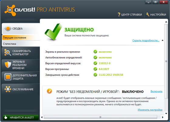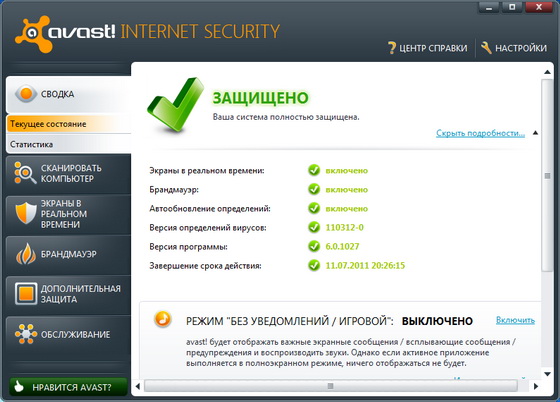 Скачать программу Avast! Internet Security 6.0.1027 Prerelease (74,51 МБ):