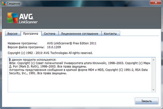 Скачать программу AVG LinkScanner Free Edition 2011 10.0.1209a3533 х64 (83,51 МБ):