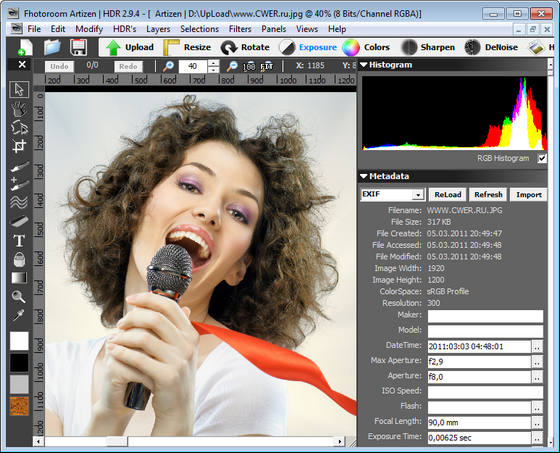 - Редактор 8-битных (LDRi), 16-битных (LDRi) и 32-битных (HDRi) изображений