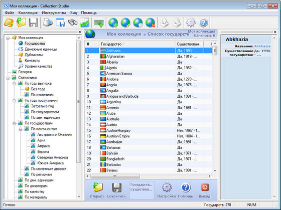 Collection Studio - программа, которая помогает коллекционерам для учета своих коллекций монет, банкнот, почтовых марок, плакатов, дисков, фильмов и др. Она позволяет отобразить всю коллекцию в одном списке или частично в зависимости от критерия выборки и сортировки. Легкие для использования инструменты помогают быстро и удобно вносить изменения и дополнения в базу вашей коллекции, позволяя наслаждаться удивительным миром коллекционирования.