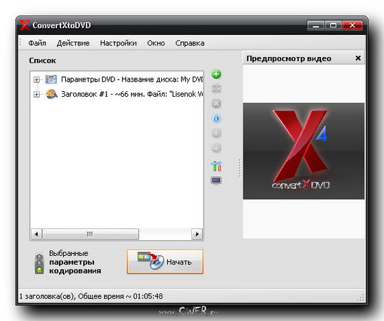 Программа обладает всеми функция, которые потребуются при конвертации обычных видеофайлов в DVD: