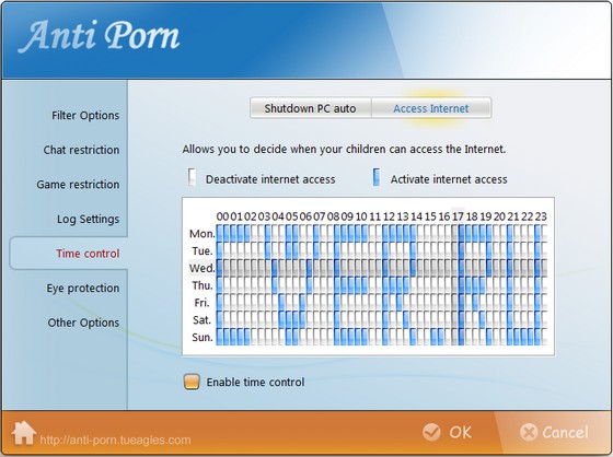 - You can easily assign internet access time at certain hours, even on specific day.A special feature of Anti-Porn is that the PC time will be calibrate as Greenwich Time.