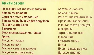 Школа Гастронома предлагает нам новый сборник замечательных рецептов. Следуя пошаговым инструкциям и иллюстрациям, вы без особых усилий и с большим удовольствием приготовите все, что вам необходимо. Все рецепты протестированы на редакционной кухне, проверены и одобрены многочисленными поклонниками издания.