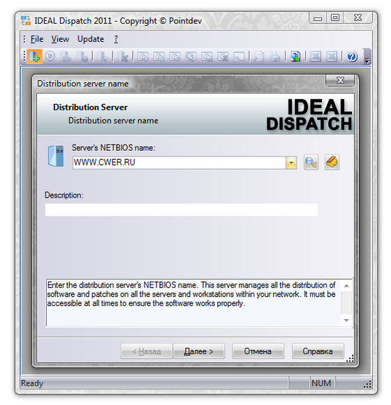 Pointdev Ideal Dispatch - программа для управления установкой и работой программного обеспечения, а также для управления скриптами на сетевых серверах и клиентских рабочих станциях. С помощью этого инструмента вы сможете удаленно устанавливать Windows-патчи, выполнять сценарии и msi файлы, которые вы предварительно определили или обновлять программное обеспечение на всех серверах и клиентских рабочих станциях в вашей сети. Программа состоит из трех элементов: IDEAL Dispatch Console, IDEAL Dispatch Server, IDEAL Dispatch Agent. IDEAL Dispatch Console управляет всеми дистрибутивными серверами. Этот инструмент позволяет вам добавлять и удалять дистрибутивные серверы, а также создавать распределение на этих различных серверах. IDEAL Dispatch Console может управлять неограниченным количеством дистрибутивных серверов. Инсталляция выполняется удаленно и автоматически, на любом сервере или рабочей станции. IDEAL Dispatch Agent управляет работой программы или скрипта на отдельно взятой рабочей станции.