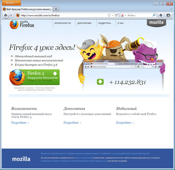 Скачать программу Portable Mozilla Firefox 4.0.1 Final (14,49 МБ):
