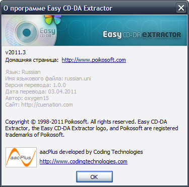 Easy CD-DA Extractor - программа позволяет производить копирование музыкальных произведений с аудио-CD на компьютер в форматах 3G2, 3GP, MP1, MP2, MP3, WMA, Ogg Vorbis, MP4, M4A, AAC, aacPlus (HE-AAC, AAC+, HE-AAC+PS, eAAC+), FLAC, Musepack, WavPack, WAV, AIFF, Monkey Audio, CUE и M3U.