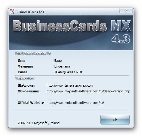 Скачать программу BusinessCards MX 4.3 (90 МБ):