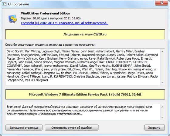 Скачать программу WinUtilities Pro 10.01 (7,79 МБ):