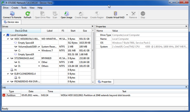 R-Studio - лучшее на сегодняшний день программное обеспечение для восстановления данных. Поддерживает файловые системы FAT12/16/32, NTFS, NTFS5, Ext2FS (Linux). Позволяет восстанавливать файлы, как на локальных логических и физических жестких дисках, так и на дисках, расположенных на удаленных компьютерах через компьютерную сеть.