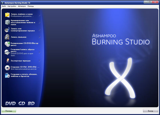 С самого первого выпуска Ashampoo Burning Studio изменила представление о привычном программном обеспечении для записи. Вместо того, чтобы тратить время на подробное изучение сотни сложных свойств, вам надо всего лишь выбрать задание, например - «Записать файлы», «Дублировать файлы» или «Записать фильм», а затем программа поможет вам сделать все необходимое. Вы всего лишь выбираете нужный формат, файлы, и записываете диск. Это легко, но легкость не означает, что у вас меньше функциональных возможностей: усовершенствованные функции записи доступны и опытным пользователям, которые хотели бы выбрать специфические системные файлы или воспользоваться специальной областью начальной загрузки.