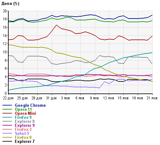 Windows 7 — операционная система семейства Windows NT, следующая за Windows Vista. В линейке Windows NT система носит номер версии 6.1 (Windows 2000 — 5.0, Windows XP — 5.1, Windows Server 2003 — 5.2, Windows Vista и Windows Server 2008 — 6.0). По состоянию на апрель 2011 года, доля Windows 7 среди используемых в мире операционных систем равна 35.9%. Год назад, в апреле 2010 года доля была равна 16.7%, возможно, в 2011 году перегонит самую широко используемую операционную систему в мире Windows XP.