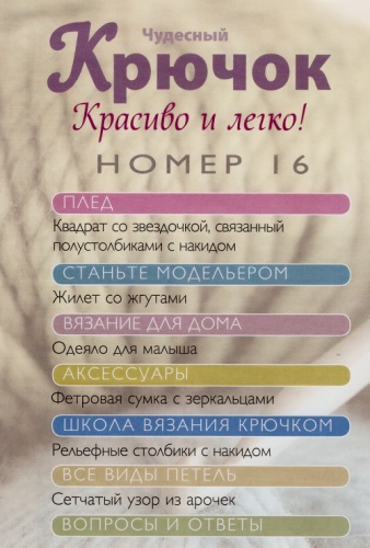 Коллекция «Чудесный крючок. Красиво и легко!» — это простой и доступный способ освоить искусство вязания крючком. С каждым номером вы сможете научиться различным способам вязания крючком, а также познакомитесь с новым узором, выполнение которого представлено пошагово с помощью простых объяснений и фотографий. В каждом выпуске предлагаются прекрасные модели для вас и вашего дома. Откройте в себе талант и познайте радость творчества! Регулярно получая описания простых в исполнении моделей, вы соберете собственную коллекцию.