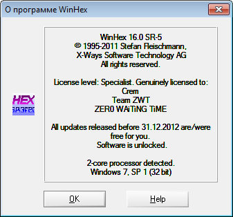 Скачать программу WinHex 16.0 SR-5 + Rus (2,01 МБ):