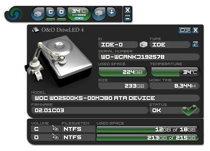 O&O DriveLED - программа, которая поможет вовремя распознать приближающийся отказ жесткого диска, чтобы своевременно сбэкапить важные данные и заменить винчестер. Программа мониторит состояние жесткого диска, используя технологию S.M.A.R.T., и сообщает о сбоях в его работе. O&O DriveLED также показывает текущую температуру жестких дисков и прогнозирует продолжительность жизни каждого устройства. Сразу после установки программы вы можете выполнить полное тестирование жестких дисков, установленных в вашем компьютере, включая проверку электроники, механики и тест поверхности.