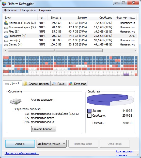 Defraggler - программа для дефрагментации жестких дисков. По словам разработчика, Defraggler отличается от других продуктов на рынке, прежде всего, тем, что позволяет дефрагментировать не только жесткий диск целиком, но и отдельные файлы. Программа предлагает простой и понятный интерфейс, поддерживает Windows 2000, 2003, XP, Vista и 7, в том числе 64-битные версии, работает с файловыми системами FAT32 и NTFS.