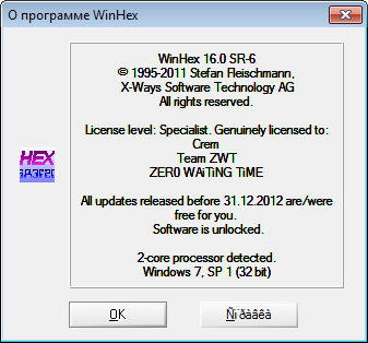 Скачать программу WinHex 16.0 SR-6 + Rus (2,09 МБ):