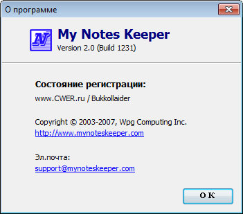 Программа My Notes Keeper предназначена для хранения самой различной информации (личных записей, e-mails, картинок, URL-ов, документов, контактов и паролей). Имеет встроенный текстовый редактор с поддержкой форматирования, возможностями вставки таблиц, изображений и специальных символов. Информация в программе представлена в виде записей. Благодаря древовидному интерфейсу, поиск нужной информации не занимает много времени. При необходимости данные, хранящиеся в программе, могут быть зашифрованы и защищены паролем.