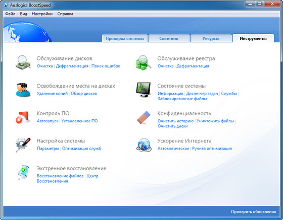 AusLogics BoostSpeed - популярная утилита для ускорения работы системы Windows, программ и Интернет-соединения от компании AusLogics. Программа оптимизирует компьютерную память, ускоряет загрузку Windows, повышает быстродействие Microsoft Office, The Bat, FireFox, Opera, Skype, чистит реестр и диск компьютера. Четвертая версия программы включает в себя знаменитый Auslogics Disk Defrag и набор новых утилит для современных компьютеров. После дефрагментации реестра BoostSpeed, скорость компьютера возрастет за счет уменьшения фрагментации файлов реестра, уменьшения их размера, а также благодаря устранению ошибок в реестре. Помимо этого данная программа предлагает мощные возможности очистки реестра и диска, что в свою очередь позволит вашему компьютеру работать более быстро и эффективно. Имеет приятный пользовательский интерфейс и поддержку русского языка.