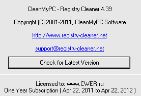 Скачать программу CleanMyPC Registry Cleaner 4.39 (3,41 МБ):