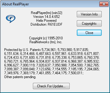 RealPlayer - популярный проигрыватель аудио и видео. Проигрыватель интегрирован с веб-порталом RealNetwork, что позволяет пользователю быть в курсе всех событий, транслируемых через Интернет. Данная программа предназначена для воспроизведения потоковых видео и аудио, постоянно используемых в Сети, а также умеющая работать с QuickTime, Windows Media, MPEG, DVD и VCD файлами.