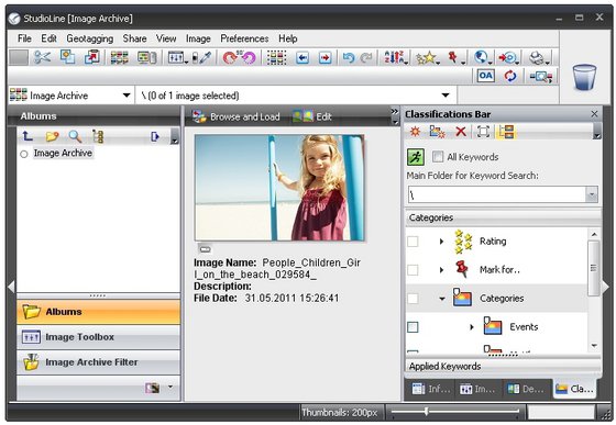StudioLine Photo Classic Plus - многофункциональная программа для организации и ведения фотоархива с возможностью редактирования и улучшения цифровых фотографий. В StudioLine Photo Classic имеется большое число инструментальных средств для работы с изображениями, позволяющих удалить эффект красных глаз, улучшить цветовые тона, отрегулировать яркость, контрастность и т.п Имеется возможность добавлять к фотографиям описания, проводить поиск по базе данных, просматривать фото в режиме слайдшоу, в том числе сразу на двух мониторах.Кроме этого, прямо из StudioLine Photo можно отослать выбранные фотографии по e-mail, распечатать их на принтере, создать веб-галерею или резервную копию всей базы фотографий, записав ее на CD или DVD.