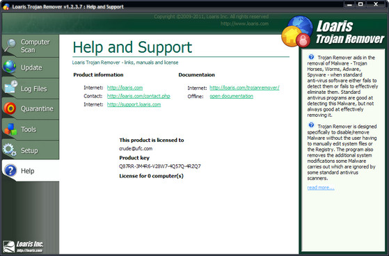 Loaris Trojan Remover - это программа, с помощью которой Вы сможете целиком очистить свой компьютер от всех агрессивных угроз! Вас забрасывают popup объявлениями, видите новую панель инструментов в вашем браузере, ваша домашняя страница изменяется на нежеланные сайты, или вы забросаны раздражающим спамом? Возможно, странные программы загружаются при запуске системы или в ваших фаворитах имеют новые входы, которых вы не хотите.