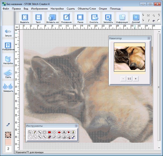 STOIK Stitch Creator - программа для превращения фотографий или отсканированных изображений в схемы для вышивки крестиком. Stitch Creator автоматически преобразовывает изображения в схему для вышивания крестиком, которая построена в соответствии с заданными настройками набора ниток, типа ткани, размера и вида стежков. Также программа позволяет редактировать схемы вручную с помощью таких инструментов как перо, ластик, заливка цветом, текст и т.д.