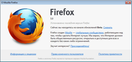 Скачать программу Mozilla Firefox 5.0 Beta 5 (13,86 МБ):