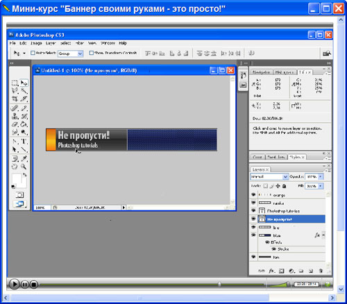 Данный обучающий материал будет полезен как новичкам, так и людям, неплохо владеющим графическими редакторами. Баннер с красивой картинкой, выполненный профессиональным дизайнером не всегда может быть кликабельным и эффективным. Поэтому основная цель этого мини-курса – показать Вам определенные правила и советы, следуя которым можно создать эффективный кликабельный баннер. Каждый урок запускается отдельно, предустановленных кодеков не требуется.